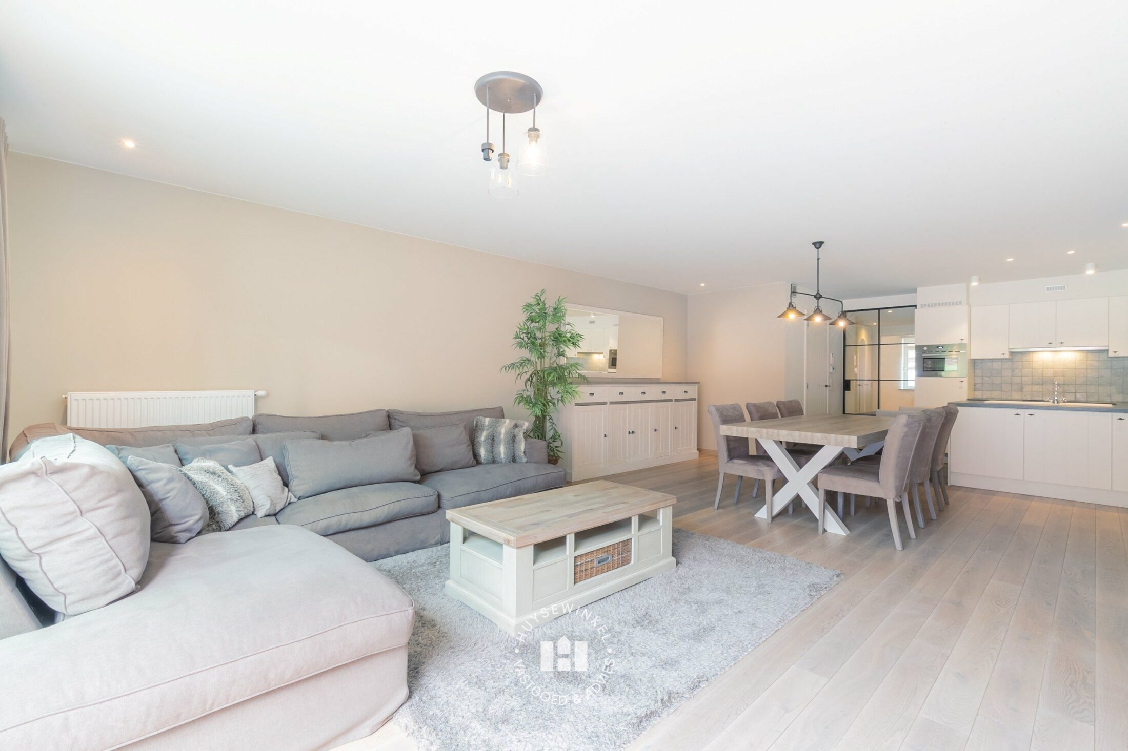U betreedt het appartement via een ruime inkomhal met vestiaire en gastentoilet. De leefruimte is lichtrijk en afgewerkt met parket, en gaat over in een open keuken met gezellige ontbijthoek. Verder bevindt zich aansluitend aan de keuken een praktische berging/wasplaats.