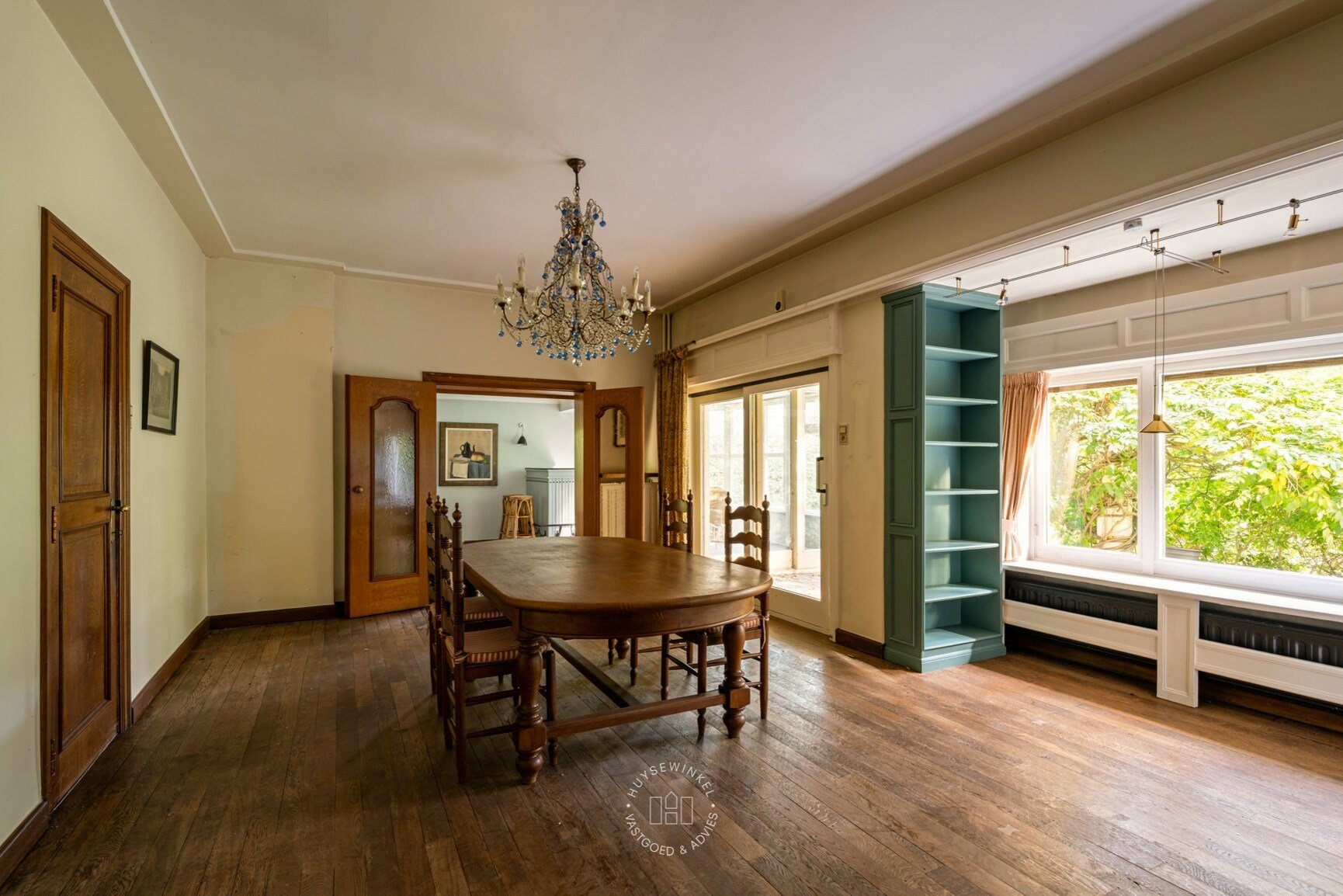 Het domein leent zich perfect tot een grondige totaalrenovatie met eventuele uitbreidingen, maar even goed kan hier een nieuwe, verfijnde villa worden gecreëerd. Het potentieel tot heropbouw werd reeds aftoetst bij de gemeentelijke diensten: binnen de richtlijnen van het woonparkgebied kan u maar liefst tot 10% van de perceeloppervlakte benutten voor de bebouwbare oppervlakte. Ook het opsplitsen in twee hoogwaardige loten van circa 3.500 m² behoort tot de mogelijkheden.