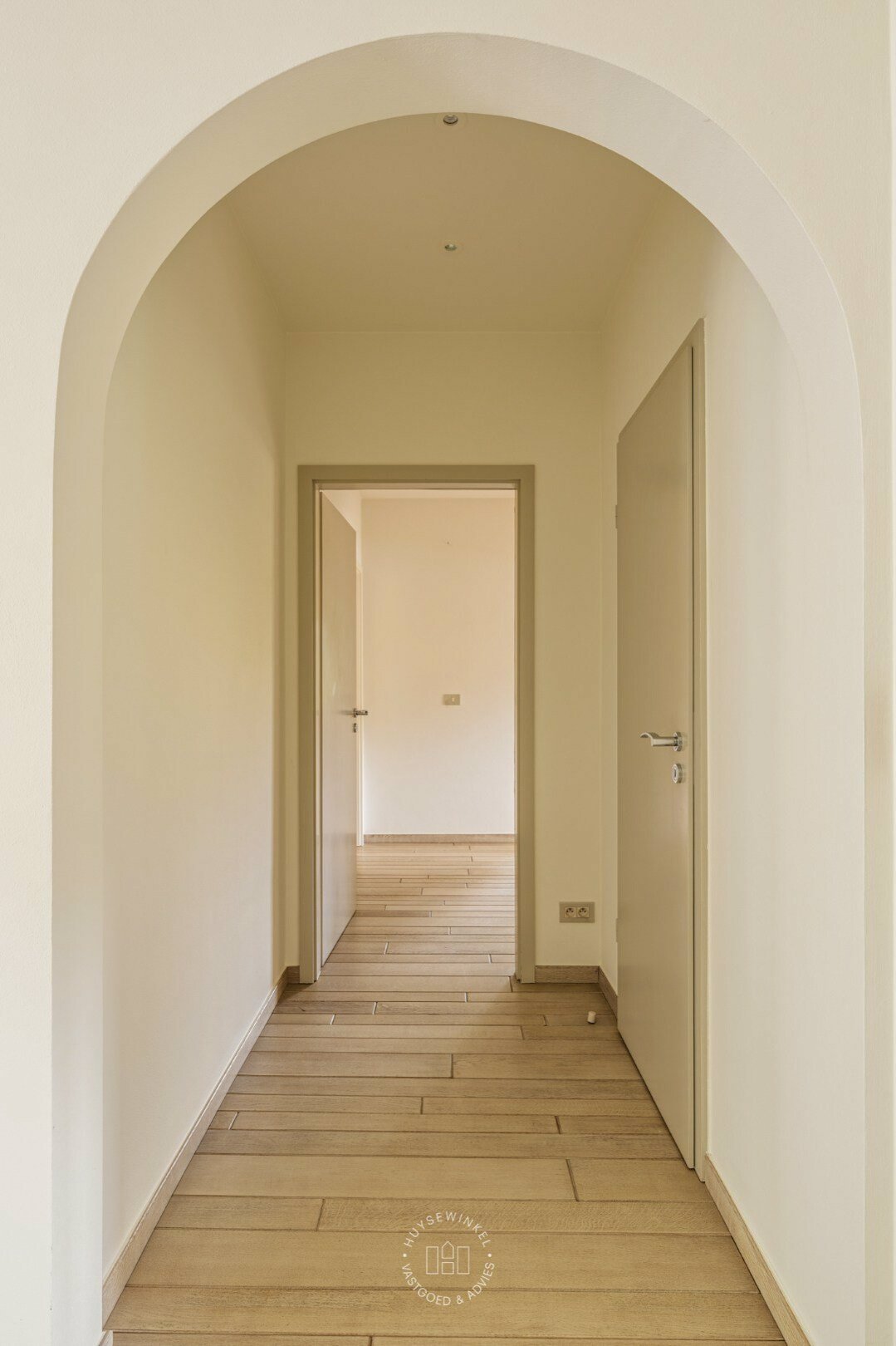 Het appartement is voorzien van een stijlvolle en kwalitatieve afwerking. Zo zijn er onder meer een parketvloer, op maat gemaakte kasten, inbouwverlichting, raambekleding, alsook natuursteen aanwezig doorheen het appartement.