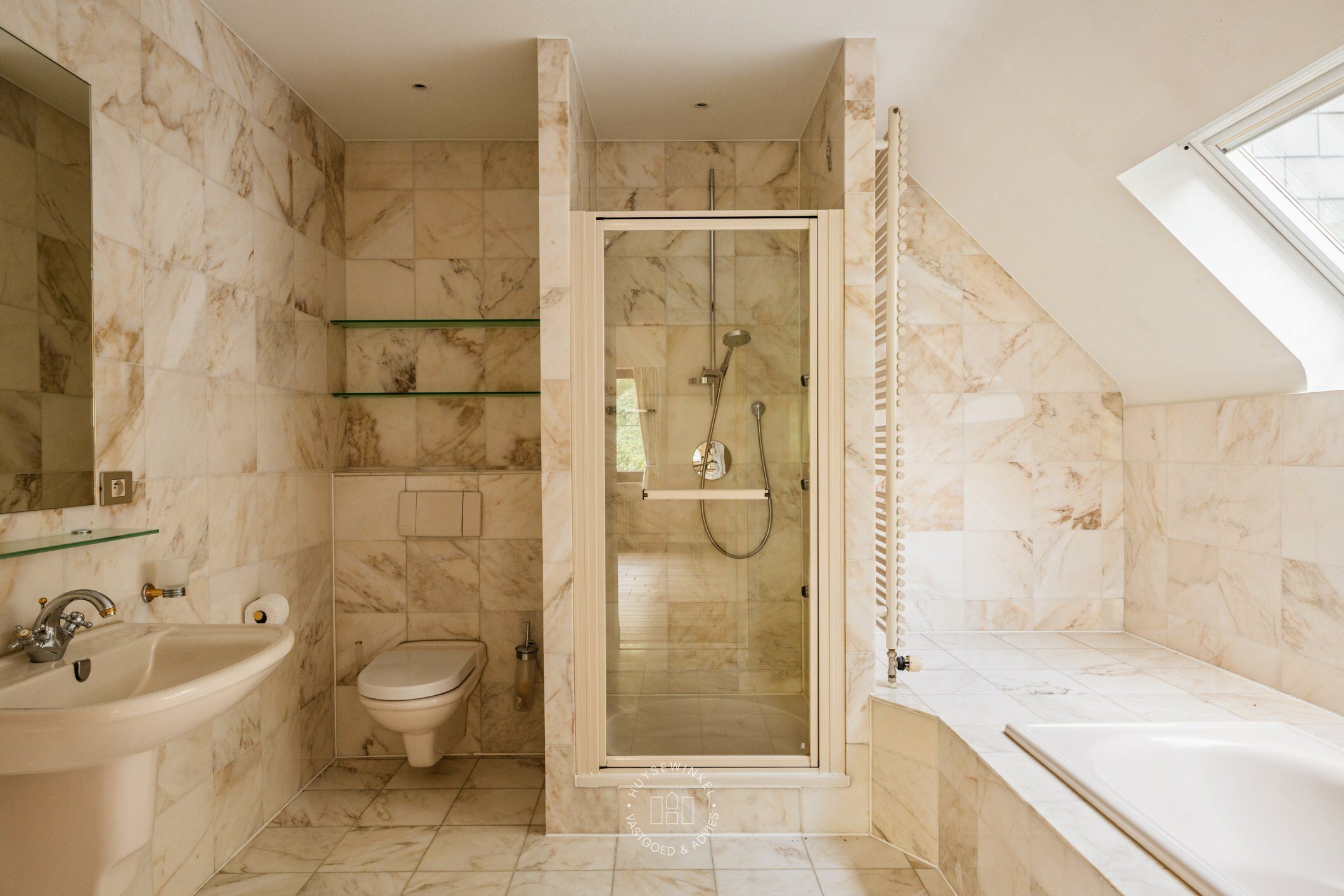 De keuken is uitgerust met de nodige toestellen en heeft aansluitend een praktische bijkeuken. Via de nachthal bereik je het slaapgedeelte. Hier bevinden zich drie slaapkamers, waaronder de master bedroom met ensuite badkamer, alsook een tweede slaapkamer met ensuite douchekamer.