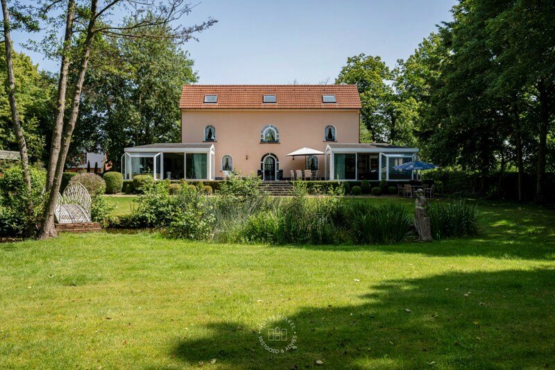 In een rustige straat in Grembergen, vlak bij het centrum van Dendermonde, bevindt zich ‘t Kasteeltje Dommer. Deze charmante woning met bijhorende vijver ligt op een idyllisch domein van maar liefst 6.607 m² - een oase van rust en groen waar het heerlijk vertoeven is. De oorsprong van deze authentieke burgerwoning gaat terug tot de 18de eeuw. In 1995 werd het gebouw volledig gerenoveerd, met veel aandacht voor de authentieke charme en karaktervolle elementen. De volwassen tuin omringt de woning volledig en biedt maximale privacy en een prachtig uitzicht op het omliggende groen. U betreedt de woning via de rijkelijke trap aan de achterzijde en komt binnen in de centrale inkomhal met gastentoilet. Aan de rechterkant bevindt zich een sfeervolle retrobar — perfect om gasten te ontvangen. Deze ruimte loopt door naar de eerste aanbouw: een gezellige leefruimte met houthaard en een prachtig zicht op de tuin. Aan de andere kant van de woning leidt een gang naar de keuken en de tweede aanbouw, momenteel ingericht als eetkamer, eveneens met houthaard en tuinzicht. Op de eerste verdieping vindt u een ruime overloop met nachttoilet, een eerste slaapkamer en de badkamer, uitgerust met een ligbad, douche en twee wastafels. De tweede verdieping biedt een centrale bureauruimte en twee bijkomende ruime slaapkamers. Bovendien is de woning volledig onderkelderd, inclusief het terras, wat zorgt voor voldoende opbergruimte. Bent u op zoek naar een charmante woning op een prachtig domein? Dan is dit de verborgen parel die u zoekt.