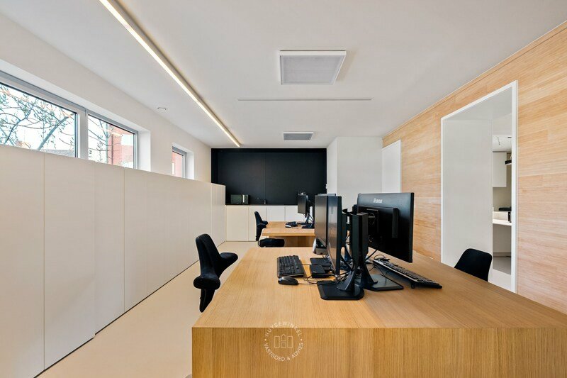 In Herzele wordt dit modern kantoor te koop aangeboden, opgebouwd uit een duurzame staalstructuur met houtskeletbouw. Het gebouw straalt ruimte en licht uit en combineert een doordachte indeling met hedendaagse technieken. Bij binnenkomst wordt u ontvangen in een ruime receptie die in directe verbinding staat met een private vergaderzaal. Het gelijkvloers is ingericht volgens een open desk-principe, waardoor samenwerking en transparantie centraal staan. De hoge plafonds en grote raampartijen zorgen voor mooie volumes en een vlotte connectie met de tuin, die het geheel extra uitstraling geeft. Op de eerste verdieping bevindt zich opnieuw een grote open ruimte die dankzij haar veelzijdigheid verschillende invullingen mogelijk maakt, van extra werkplekken tot een creatieve zone of lounge. Daarnaast is er een volledig ingerichte keuken aanwezig, evenals een serverlokaal dat het gebouw klaar maakt voor elke digitale uitdaging. Ook op technisch vlak is niets aan het toeval overgelaten. Bij de verbouwing werd er volop ingezet op energiezuinige oplossingen en moderne installaties, zodat dit kantoor niet alleen functioneel en comfortabel is, maar ook toekomstgericht. Een bijkomende troef is de mogelijkheid om dit gebouw een woonfunctie te geven. Hierdoor kan de ruimte perfect worden omgevormd tot een unieke woon-werkcombinatie of een karaktervolle woning, met behoud van de mooie volumes en de connectie met de tuin. Dit eigentijdse pand biedt dus niet enkel bedrijven, maar ook particulieren die op zoek zijn naar iets buitengewoons, een uitzonderlijke kans in Herzele.
